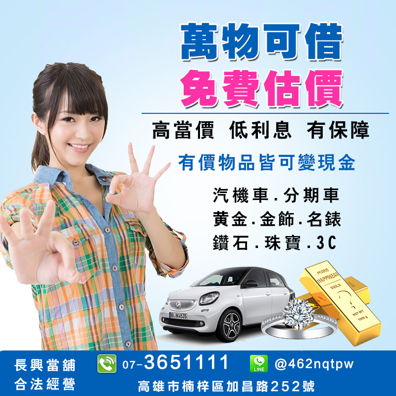 上一篇:美國「無限期」高雄借款,高雄當舖,汽機車借款,黃金借錢,當舖